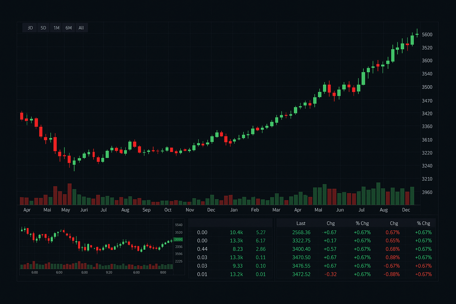 Le cœur de Dorvance, c'est sa capacité à vous montrer ce qui se passe sur les marchés maintenant, pas demain. Vous accédez à des graphiques actualisés en continu, affichant prix, volumes échangés, tendances et indicateurs techniques. Ces données viennent directement des bourses et des courtiers, garantissant leur exactitude.